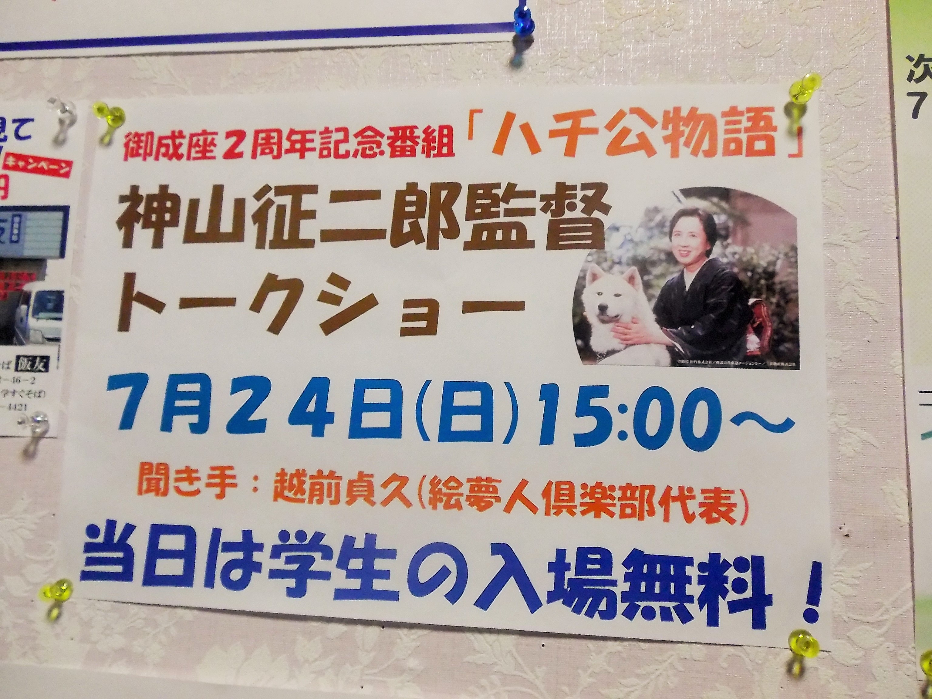 明日!15時より! 「ハチ公物語」神山征二郎監督トークショーが開催です!