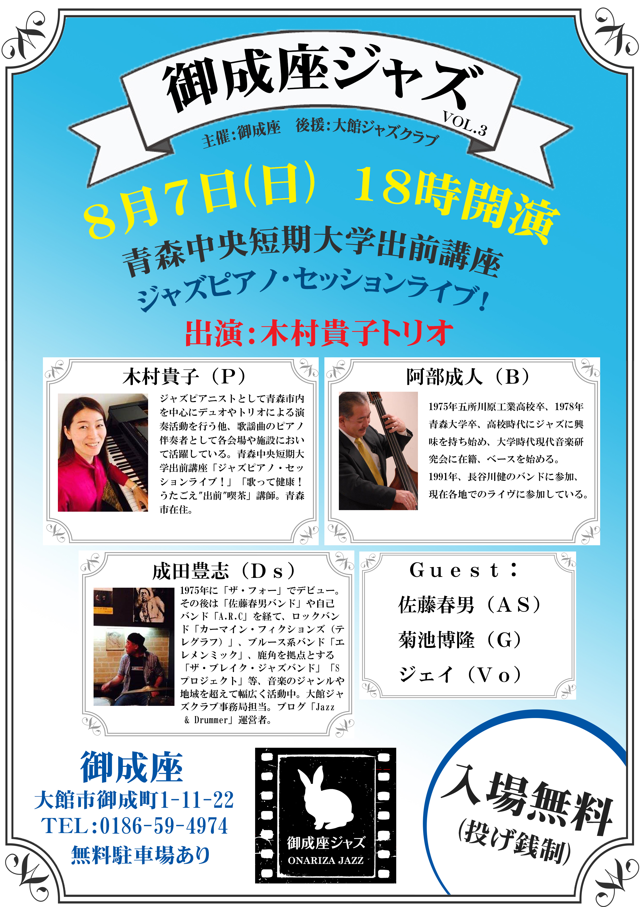 日付も迫ってまいりました!今度の日曜日は、大好評の「御成座ジャズ」第3回目が開催です!