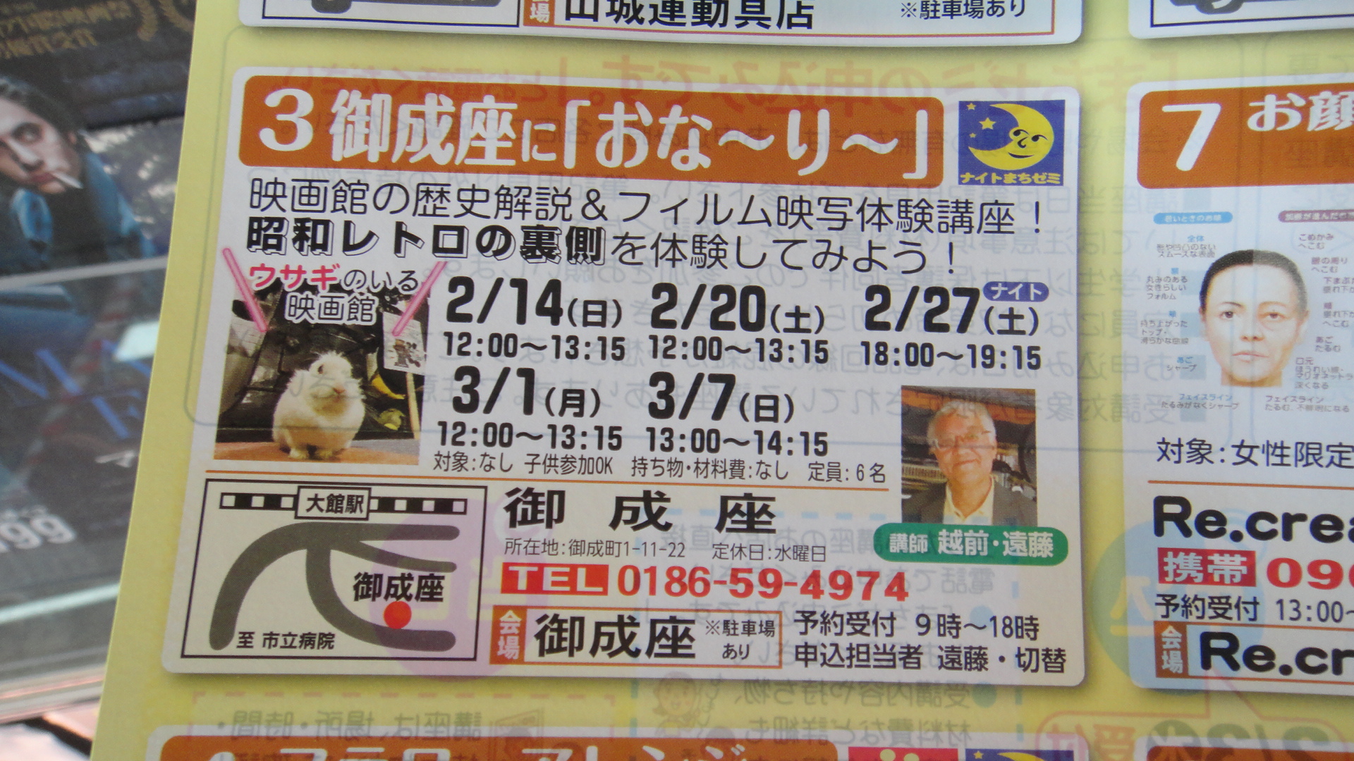 恒例となっている昭和の映画館解説&35ミリフィルム映写体験会が一年ぶりに開催です!ここでしか味わえない貴重な映画館体験が無料で受けられるこの機会をどうぞお見逃しなく!お申し込みは御成座までお気軽にご連絡下さい。既に27日は定員となっておりますが、その他の日程はまだまだ参加者募集中!