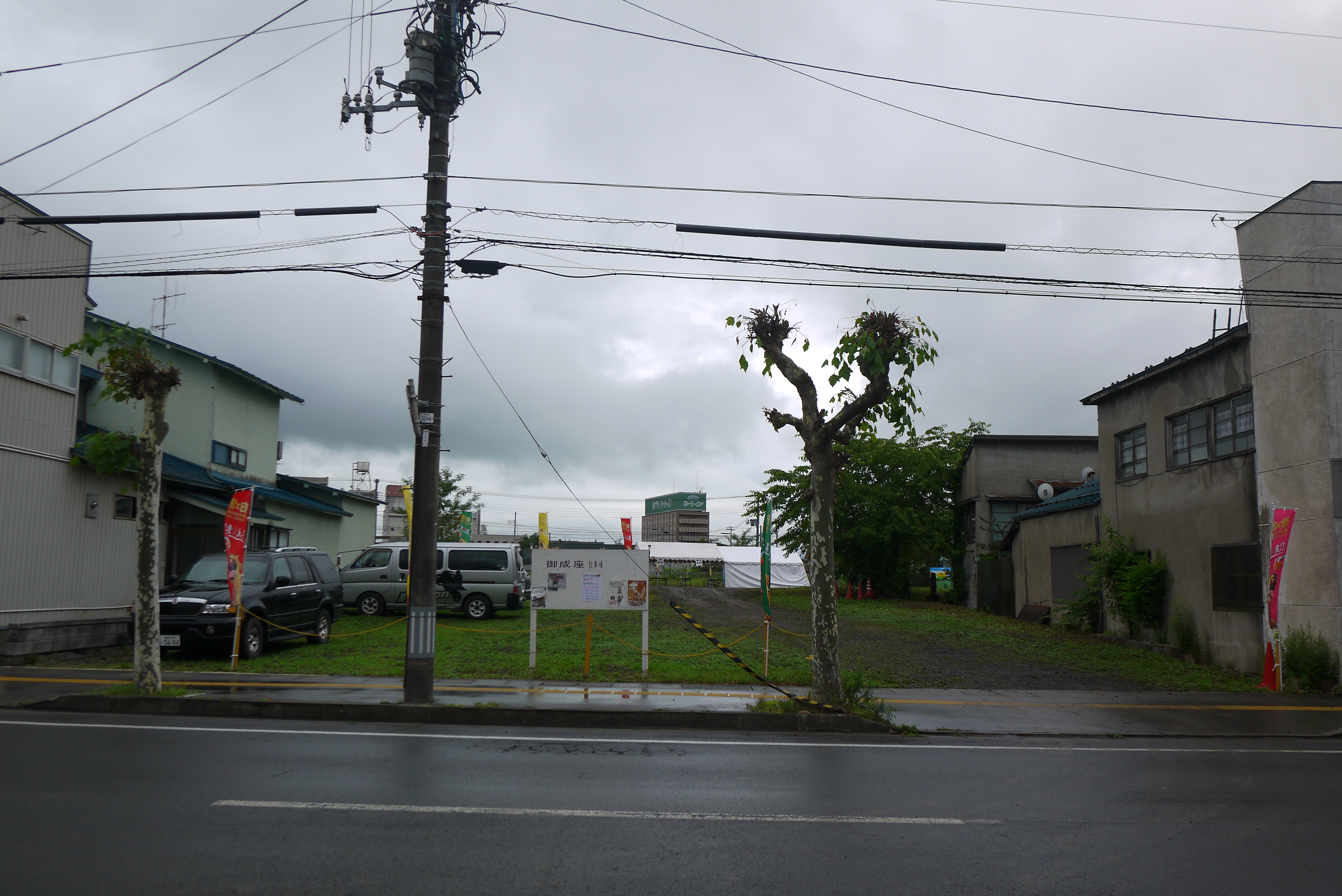 会場は御成座のすぐ目の前の空き地。そして入口のゲートはこの御成座駐車場になります。